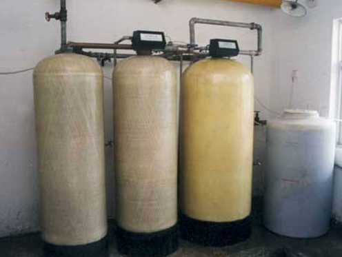 水的硬度主要由鈣、鎂形成及表示,一般采用陽離子交換樹脂(軟水器)將原水通過鈉型陽離子交換樹脂,使水中的硬度成分Ca2+、Mg2+與樹脂中的Na+相交換,從而吸附水中的Ca2+、Mg2+,使水得到軟化。隨著樹脂內(nèi)Ca2+、Mg2+的增加,樹脂去除Ca2+、Mg2+的效能逐漸降低,當(dāng)樹脂吸收一定量的鈣鎂離子之后,就必須進(jìn)行再生,再生過程就是用鹽箱中的食鹽水沖洗樹脂層,把樹脂上的硬度離子在置換出來,隨再生廢液排出罐外,樹脂就又恢復(fù)了軟化交換功能。